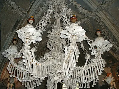 7.Osario de Sedlec en la República Checa es una capilla cercana al cementerio decorada con los huesos de 40.000 esqueletos humanos.