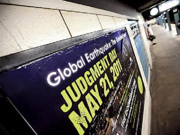 2011 d.C.—El 21 de mayo comenzará el Día del Juicio Final y se producirá el arrebatamiento (la subida a los cielos de los elegidos por Dios) al finalizar la gran tribulación de 23 años. El 21 de octubre, el mundo será destruido por el fuego (7.000 años desde el Diluvio; 13.023 años desde la creación).