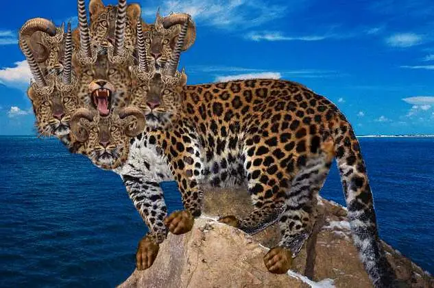 13:2 Y la bestia que vi era semejante a un leopardo, y sus pies como de oso, y su boca como boca de león. Y el dragón le dio su poder y su trono, y grande autoridad.