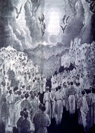 7:9 Después de esto miré, y he aquí una gran multitud, la cual nadie podía contar, de todas naciones y tribus y pueblos y lenguas, que estaban delante del trono y en la presencia del Cordero, vestidos de ropas blancas, y con palmas en las manos;