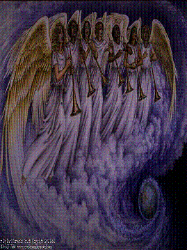 8:13 Y miré, y oí a un ángel volar por en medio del cielo, diciendo a gran voz: ¡Ay, ay, ay, de los que moran en la tierra, a causa de los otros toques de trompeta que están para sonar los tres ángeles!
