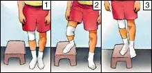 Suba un escalón, lateral, 10 veces. Súbase a un banco de 6 pulgadas de altura, comience con la pierna operada, bájese y vuelva a la posición inicial, aumente la altura de la plataforma a medida que recupere la fuerza. Repita 10 veces.