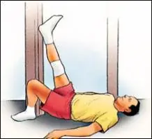 Contracción de los ligamentos de la corva, 10 veces. No debe moverse en este ejercicio. Acuéstese o siéntese con sus rodillas dobladas a unos 10 grados. Presione los talones contra el suelo, contraiga los músculos de la parte posterior del muslo. Mantenga la tensión 5 segundos y luego relaje. Repita 10 veces.