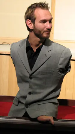 Nicholas James Vujicic (4. diciembre de 1982) es un predicador cristiano, orador motivacional y director de Life Without Limbs, una organización para personas con discapacidad física. Nació en Melbourne, Australia, con una agenesia consistente en una tri-amelia que se caracteriza por la carencia de tres de sus extremidades, le faltan ambos brazos a nivel de los hombros y extremidad inferior derecha, y con una meromelia de la extremidad inferior izquierda, tiene un pequeño pie con dos dedos protuberando de su muslo izquierdo. Al principio sus padres se sintieron desolados, pero Nick había nacido sano.