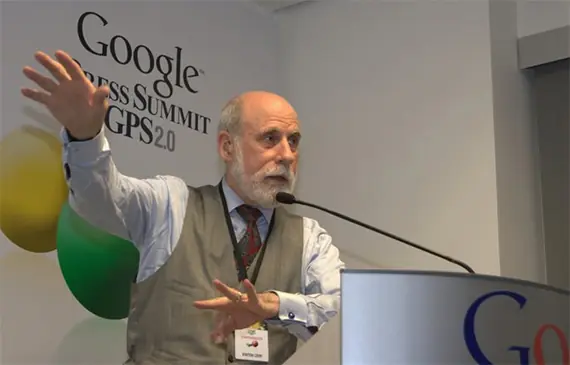 Co-creador de los protocolos TCP/IP, los que nos permiten la diaria transferencia de datos entre computadoras en los extremos de Internet. No es poca cosa. Así que Google tuvo a bien contratarlo para ser su “evangelista” sobre la posición de la empresa en todo lo que toca a Internet. Cerf