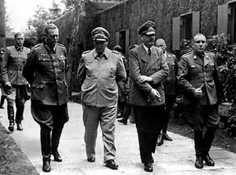 Los historiadores están de acuerdo en el protagonismo de Hitler como causante de la guerra. No hay que olvidar que el Führer hizo uso del poder que le daba su constitución para actuar como jefe de las Fuerzas Armadas (Wehrmach) y organizar un Alto Mando de las Fuerzas Armadas sobre el que mandaba. Hitler logró la unión con Austria (Anschluss) y la adquisición de los Sudetes, lo cual fue admitido por las democracias occidentales en la conferencia de Munich (1938), negociaciones que fueron objeto de muchas críticas por parte de los países europeos, especialmente dirigidas a Chamberlain, primer ministro británico. El siguiente paso, la ocupación del llamado corredor de Dantzig, fue el acontecimiento que provocó la Segunda Guerra Mundial.