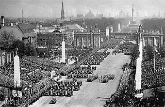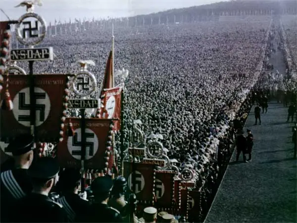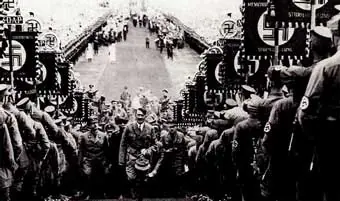 El movimiento creció con insospechada rapidez, debido en gran parte a la inteligente utilización propagandista del sueño de una patria recuperada, libre de las limitaciones impuestas por el Tratado de Versalles; creció también por el temor al comunismo y las tensiones sociales originadas por la depresión económica y el desempleo. Los nazis utilizaron la violencia para eliminar a sus oponentes y, gracias a una propaganda atractiva y una táctica hábil, Hitler asumió el poder legalmente al ser nombrado canciller del III Reich (1933), comenzando entonces la dictadura del partido. Las masas fueron cautivadas por los espectaculares desfiles militares, perfectamente organizados; por los sugestivos ritos de las asambleas del partido y por efectivos lemas acerca de la grandeza del país. Todos los ciudadanos eran minuciosamente controlados por la Gestapo, la temida policía secreta.