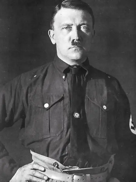 Líder del nazismo. Tras prestar servicio en un regimiento bávaro durante la Primer Guerra Mundial, el futuro dictador alemán entró en el escenario político al fundar, el 24 de febrero de 1920, el Partido Obrero Alemán (Deutsche Arbeiterpartei), que más tarde se llamará Partido Obrero Nacionalsocialista Alemán (NSDAP), abreviado y trágicamente conocido como "nazi". Nacido en el clima de guerra civil de la confusa Alemania posbélica, el partido nazi se disolvió a raíz del intento de golpe de Estado de 1923 en Múnich, ocasión en la que el propio Hitler fue arrestado. En seguida quedó en libertad y reconstruyó su partido, que empezó desde entonces su continuo ascenso. Renunció al confuso anticapitalismo y al socialismo originales, y se situó con convicción en una línea al servicio del gran capital alemán y de las corrientes revanchistas militares. En la fotografía, Hitler en 1925.