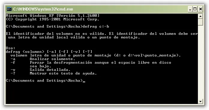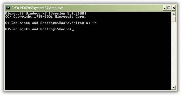 - En la ventana DOS teclear "defrag (letra de la unidad): -b". El caso tipico seria " defrag c: -b " ( sin las comillas )