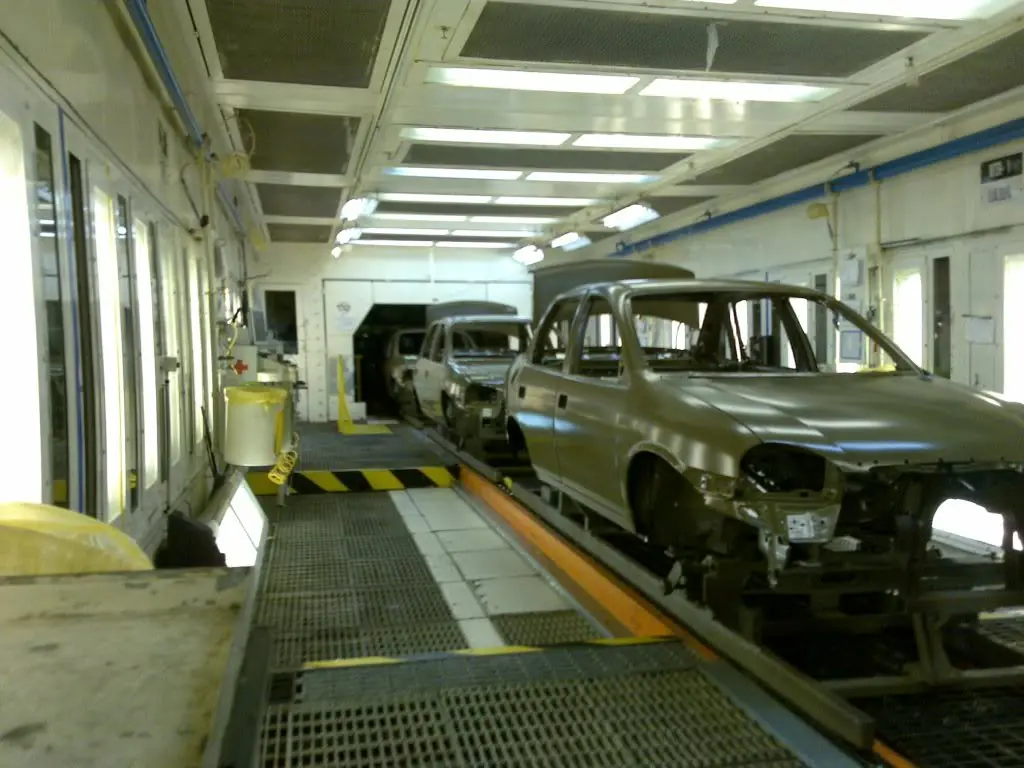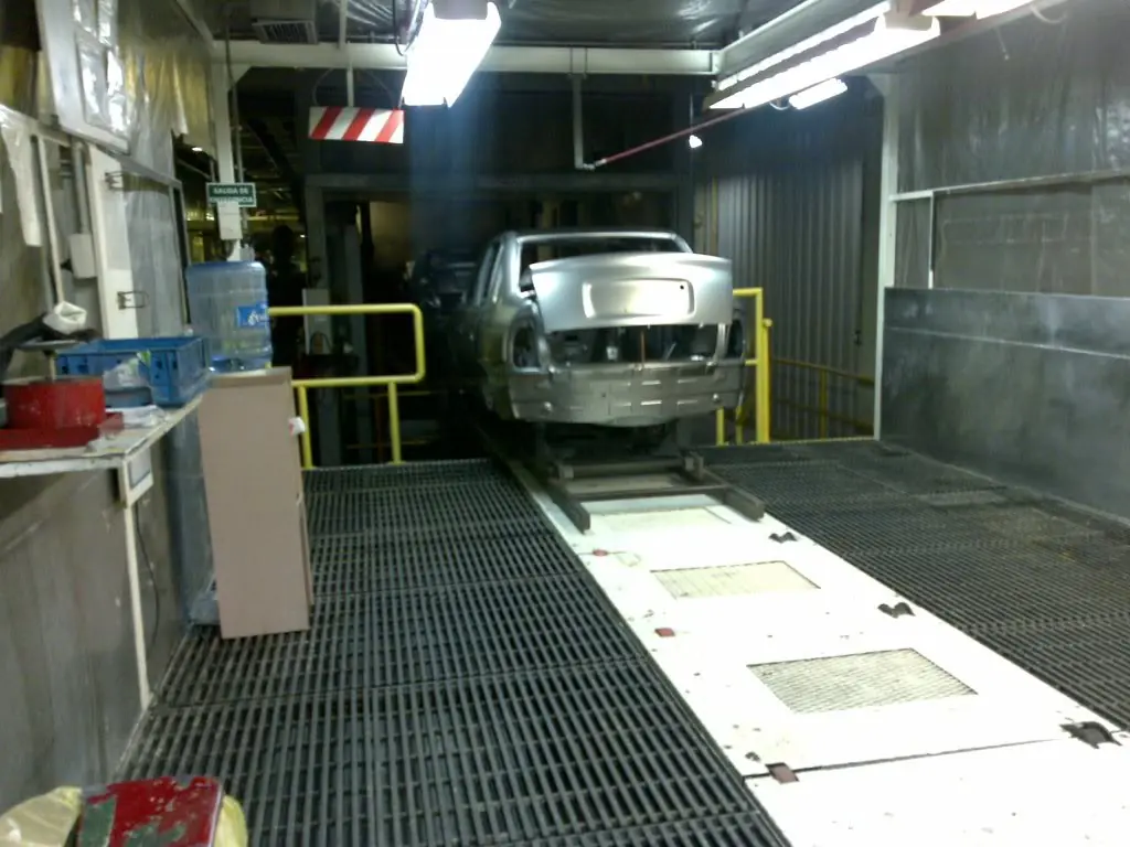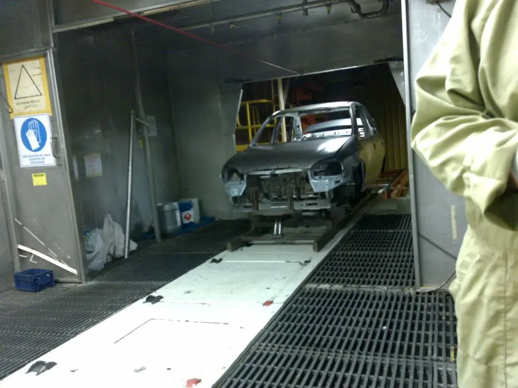 Entrada a las cubas de fosfato,son tanques enormes en los cuales los bodys son sumergidos, un proceso que dura aprox 2hs aqui venia el body ya terminado de la planta de body para comenzar el proceso de pintura aca se lo limpia, se colocan ganchos a las aberturas para que no se pegen.