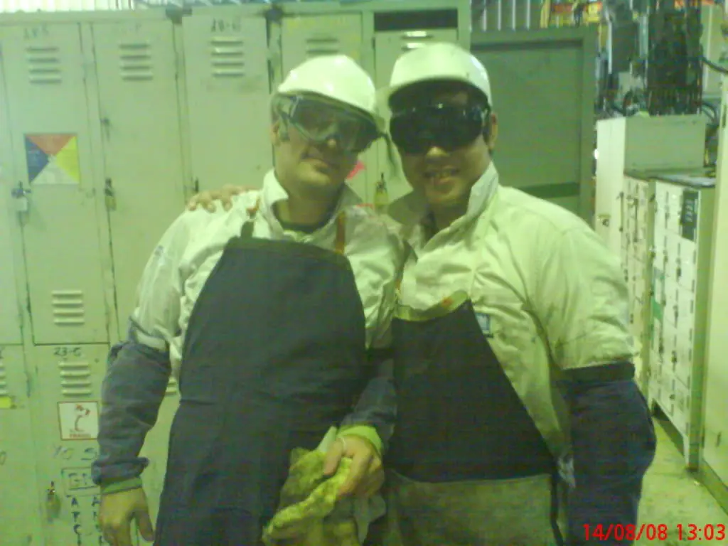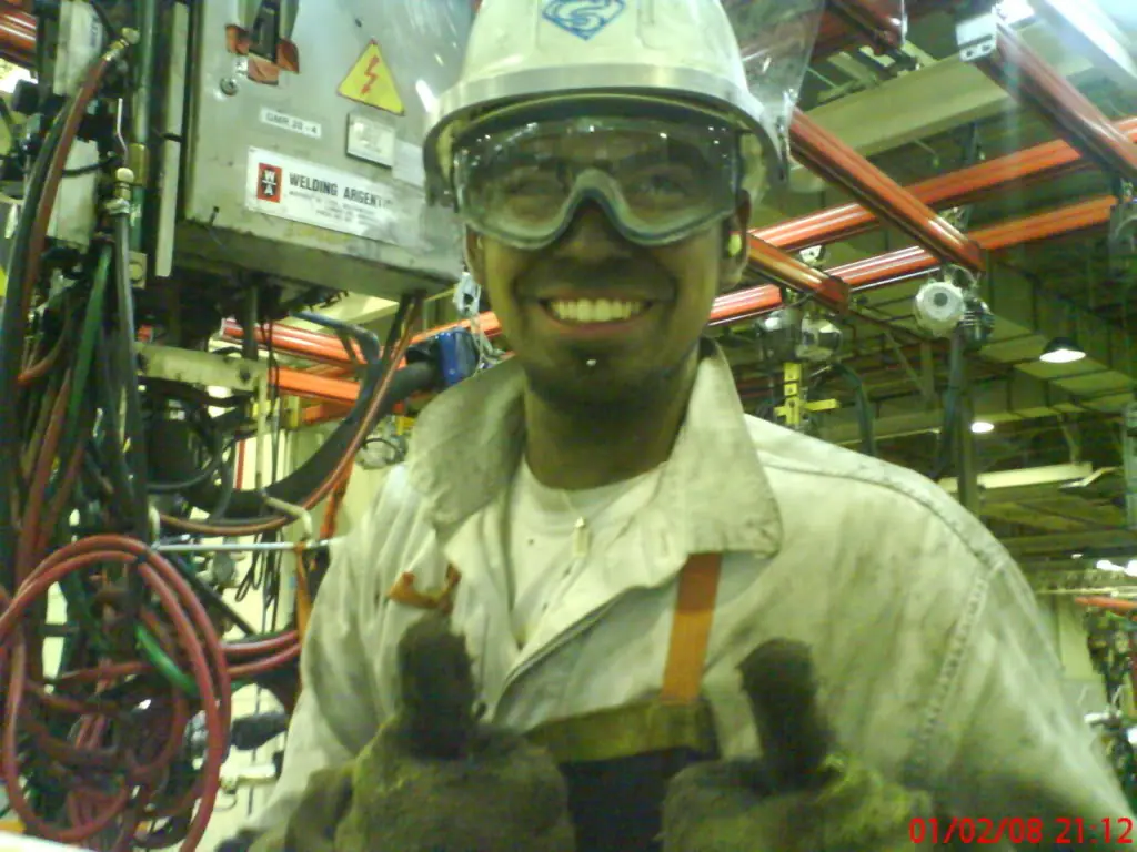 Este soy yo despues de limpiar los ductos de ventilacion de la cabina de amolado.
