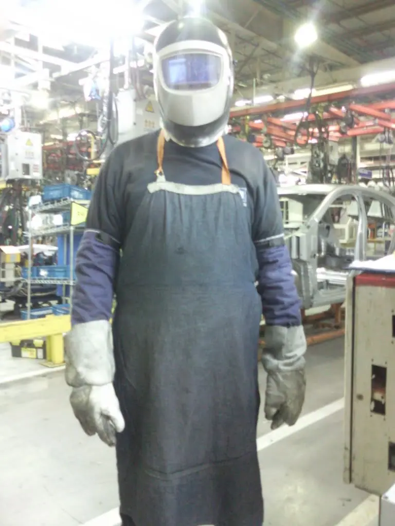 Se utiliza una mascara o careta con un visor fotocensible, forzador de aire, guantes de cuero ( si no unos comunes te duran 2 bodys no mas)