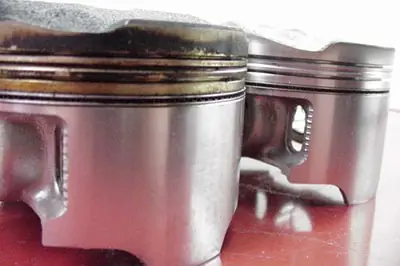 Estos pistones de HONDA F3 muestran la diferencia. El de la izquierda fue desajustado como dice el manual. El resultado es anillas que dejan pasar la presion a la caja de maquina en la aceleracion y aceite entrar en la camara de combustion en la desaceleracion. No hay que decir que esta maquina es lenta !!