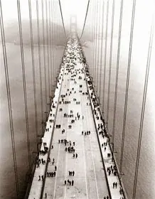 El puente se finalizó en abril de 1937 y abierto al tráfico peatonal el 27 de mayo a las 6:00 am,(Lo podeis ver en la imgén siguiente todo lleno de personas