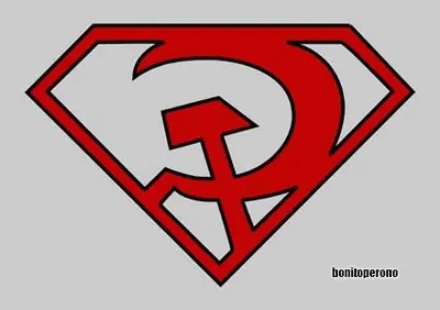 A que el cohete del mayor heroe del planeta tierra aterrizara en la URRS , en la tierra del comunismo, donde la Unión Sovietica sería representada por el hombre de acero, y en su pecho en vez de la gran S pondríamos la hoz y el martillo . . .