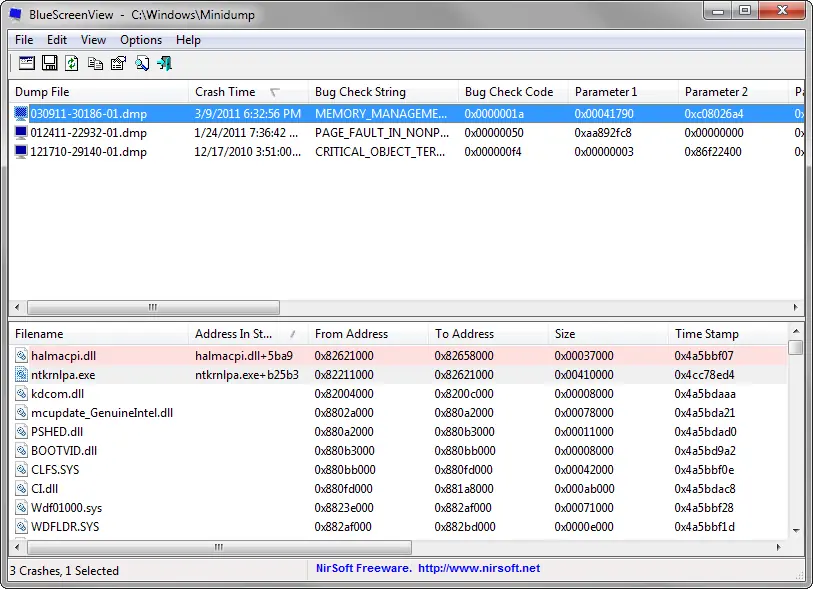 Windows 7 mantiene los registros de estos "errores de detención". Para ver los registros y darles sentido, descarga y ejecuta BlueScreenView , un programa gratuito y portátil por NirSoft. El programa te muestra lo que se estaban ejecutando en el momento del accidente, y destaca el probable problema. Por lo regular este tipo de problemas se arregla con las actualizaciones de Windows.