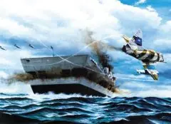 Los aparatos configurados con tres bombas de 250 kg. cada uno, se fueron acercando velozmente al objetivo, en vuelo bien rasante: apenas 12 mts. los separaban del agua.