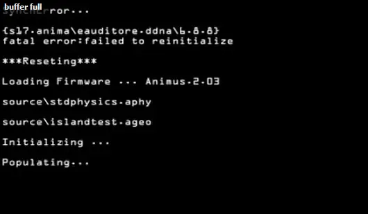 Durante el video de introducción de 6 segundos, si paras el video en el segundo 4 se puede ver esto en la consola del Animus