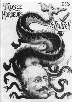 Sus detractores querían a toda costa que Dreyfus fuera declarado culpable, por ser judío. (caricatura inglesa) Caricatura anti- Dreyfus, de V. Lenepven. Dreyfus aparece representado como un monstruo.