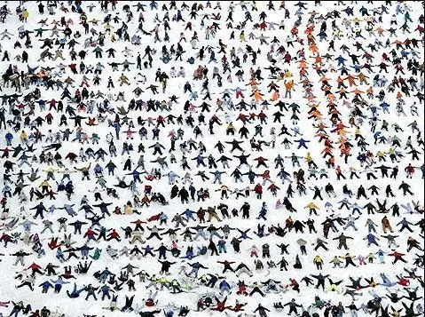 Tal como muestra esta impresionante fotografía, miles de personas estiran sus manos y piernas al unísono, imprimiendo figuras de ángeles en la nieve, durante un intento por obtener el record mundial a la mayor cantidad de ángeles de nieve en Bismarck. Los organizadores estimaron que casi 9.000 personas tomaron parte en el evento. El record mundial anterior había logrado reunir 3.784 personas.