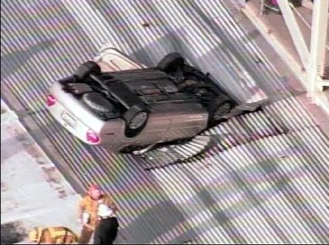 Una mujer voló con su auto desde el cuarto piso de un estacionamiento del centro médico Los Angeles County - USC en Los Ángeles, California. La conductora fue gravemente lastimada cuando su vehículo aterrizó sobre el techo de una construcción vecina luego de dar vueltas por el aire. Asombrosamente la mujer sobrevivió y a pesar de presentar serias lesiones su vida no corre riesgos.