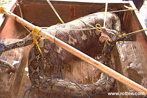 Como la recordada ilustración que de niño hacía el autor de El principito referida a una boa que había comido un elefante, la fotografía nos muestra un caso parecido. Si bien debemos aclarar que esta impresionante imagen es real y que en vez de un elefante dentro de la boa hay un cuerpo humano. Tal como lo muestra esta asombrosa fotografía se trata de una boa que engulló a un Ser humano. Para aquellos que duden, existe la siguiente página en donde más gráficamente se puede observar la situación. Mucho cuidado las personas impresionables!