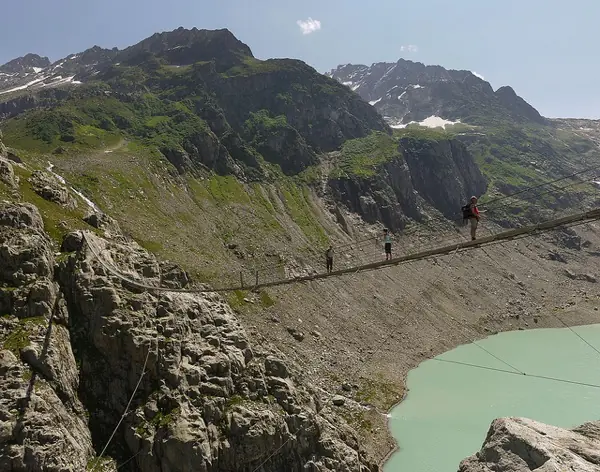 Tienes miedo a las alturas? Este puente es impresionante de unos 550 pies de largo y se encuentra a 300 metros sobre el lago de Trift, en el centro de Suiza. Es el primer puente colgante peatonal de los Alpes. En su punto central te dejan colgando en el aire, literalmente, separado de cientos de pies en todas las direcciones sin tierra firme.