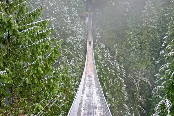 El puente Capilano fue construido en 1889. Se encuentra a 230 metros sobre el rió Capilano y se extiende 450 metros de ancho. El puente se encuentra en un parque de 27 acres y tiene a muchos visitantes cruzan su camino todos los días. Recientemente, el puente fue puesto temporalmente fuera de servicio cuando un árbol de abeto Douglas de 46 toneladas de peso cayo sobre el durante una severa tormenta de nieve, mientras que en otro incidente un adolescente cayo y murió desde una de las plataformas