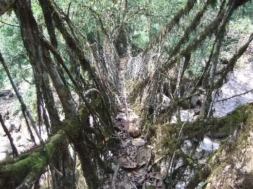 Lo creas o no, durante los últimos 100 años, este puente de 53 pies de ha construido de las raíces de los arboles-. pero ¿ estaría usted dispuesto a confiar su vida? El puente fue construido durante un periodo de 20 años mediante manipulación de las raíces vivas de un árbol de Banyan con el fin de entrelazar y extenderlas hasta que fueron capaces de soportar la carga de un ser humano