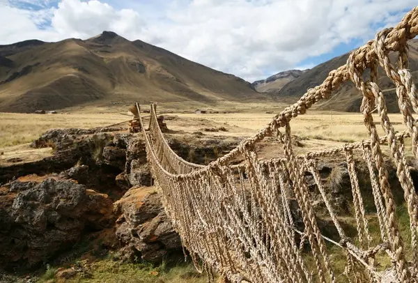 Este puente de cuerda, llamado keshwa Chaca, se construyo siguiendo el método que ha estado en uso desde la epoca Inca. El puente se reconstruye una vez al año- un proyecto de construcción realmente aterrador!