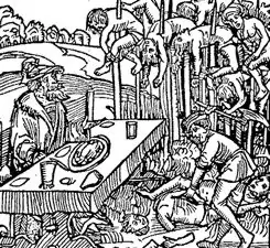 De todos modos, el método de la sierra, era ya conocido por los franceses que lo empleaban contra las brujas embarazadas, supuestamente por el mismo demonio. En Alemania, en tiempos de Lutero también se empleó esté método contra los cabecillas de las sublevaciones campesinas.