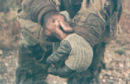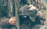 para sujetar trozos de vegetación al uniforme. La elección del calzado queda al albeldrio de cada cual: el más comun son las botas de montaña civiles.