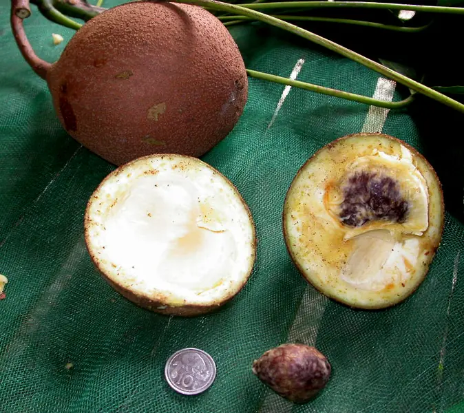Originaria del sudoeste asiático, esta fruta es una verdadera bomba nuclear. Sólo se comen las semillas que se encuentran en su interior, algo arriesgado, ya que contienen cianuro de hidrógeno, un compuesto peligroso y explosivo, igual al que los Nazis utilizaban en sus campos de exterminio. Quienes se atreven las hierven con mucho cuidado para diluir la sustancia. Y rezan para no explotar por los aires.