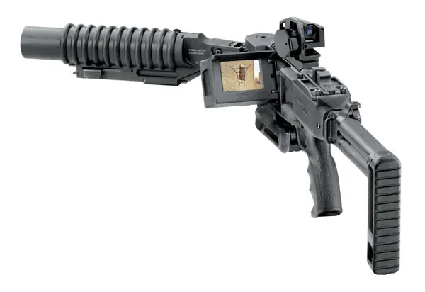 Combinando un cañón de barra pivotante con una mira con imagen de video, este denominado sistema de armas, permite al operador observar y disparar a un objetivo localizado en una esquina, sin exponerse al fuego enemigo. El cañón puede girar 63 grados a la izquierda o a la derecha y la imagen video/térmica de la mira puede ser transmitida para combinarse con otros sistemas de deteccion.