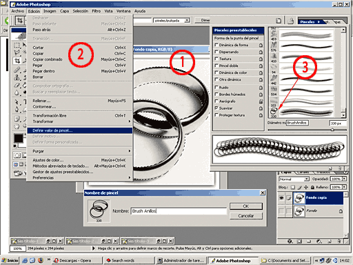 Vamos a crear un pincel con la forma de estos anillos. Los seleccionamos. El pincel no sólo adquirirá la forma externa, dino también el contenido de lo seleccionado.
