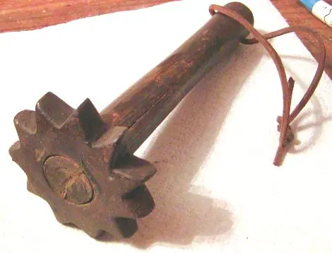 Se necesitaba algo que noqueara al enemigo al primer golpe y con las dagas eso no siempre ocurría. Así que los soldados empezaron a hacer uso de garrotes y mazas. Al principio se las fabricaban ellos mismos. Eran algo toscas y rudimentarias pero, por su espeluznante aspecto, adivino que debían de ser efectivas.