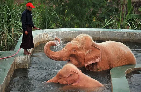 13 - Los elefantes rosas existen (de hecho son marrones pero cuando les cae agua se ven de color rosa).