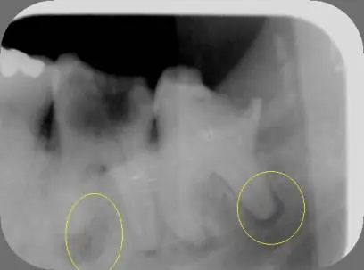 33 - Cuando la caries de un diente llega a pulpa posteriormente tiende a salir por el ápice formando un absceso (materia purulenta) y si no es tratado destruye el hueso cercano.