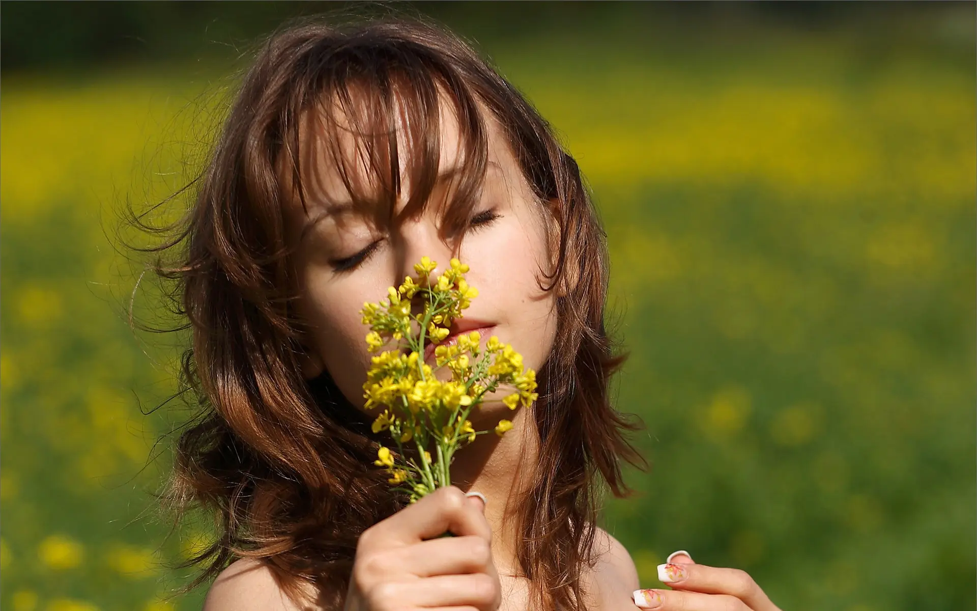 Chica oliendo flores - 1920x1200