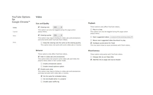 You Tube Options for Google Chrome