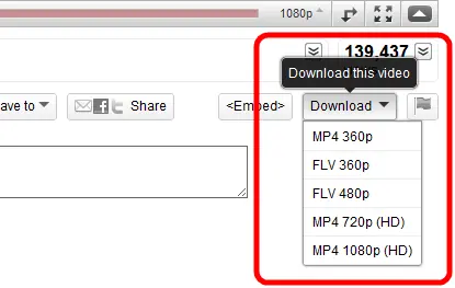 Esta extensión permite descargar los vídeos de youtube directamente desde la web. La extensión se inserta en el reproductor como se puede ver en la captura y puedes descargar los vídeos en varios formatos como MP4 720p,MP4 480p etc.