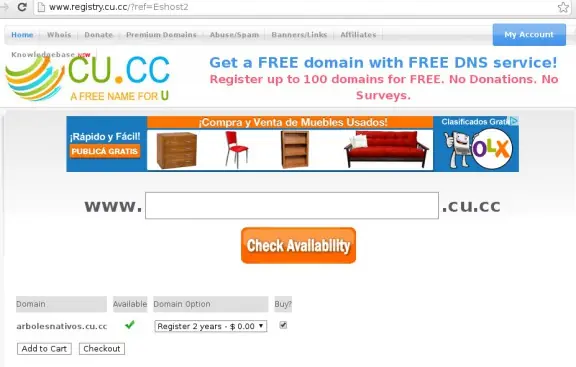 Pero el formulario de registro, al menos desde mis navegadores chromium y firefox, no dio buenos resultados, así que vayamos a cuccfree.net a modo de ejemplo: