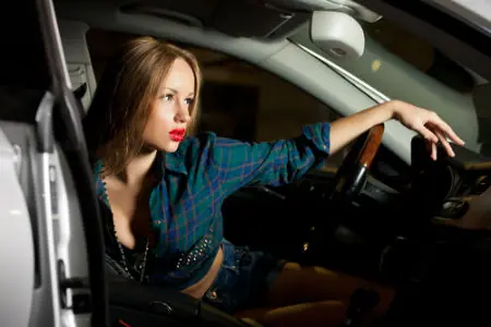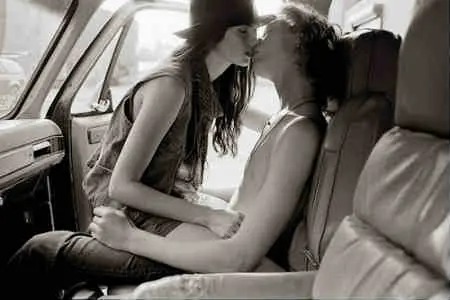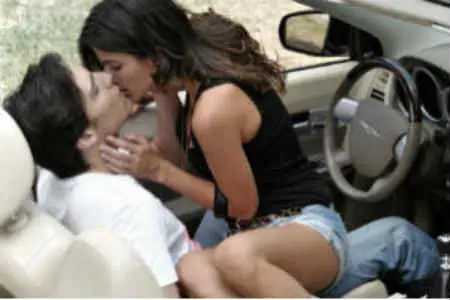 La "Vaquera". El hombre se acuesta sobre el asiento trasero y la mujer se arrodilla a horcajadas sobre él. Ella debe inclinarse hacia adelante para evitar golpearse la cabeza con el techo mientras se mueve. Esta postura también le permite variar el ángulo de penetración para una mejor estimulación del clítoris.