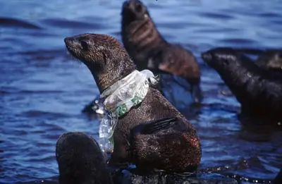 Las aros de plástico (y Otros plásticos) que se usan para enlazar los paquetes de latas o botellas de refresco o cerveza se han convertido en un peligro para las aves y otras formas de vida marina.