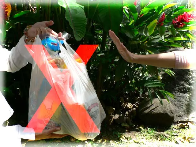 - Lleva una bolsa de tela o red cuando vayas a comprar y rechaza las de plástico. Algunos supermercados ofrecen bolsas muy resistentes que pagas una sola vez, cuando se deterioran el supermercado te las cambia completamente gratis. Si cada comprador aceptara una bolsa menos cada mes, podríamos ahorrar millones de bolsas cada año.