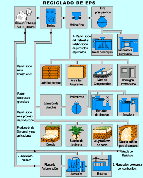 A continuación se detallan algunas de las distintas formas de reciclado del poliestireno expandido: