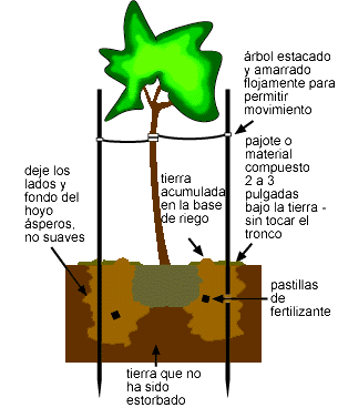Pozo: El diámetro del pozo donde colocaremos el árbol debe ser lo suficientemente grande como para que las raíces entren cómodamente.