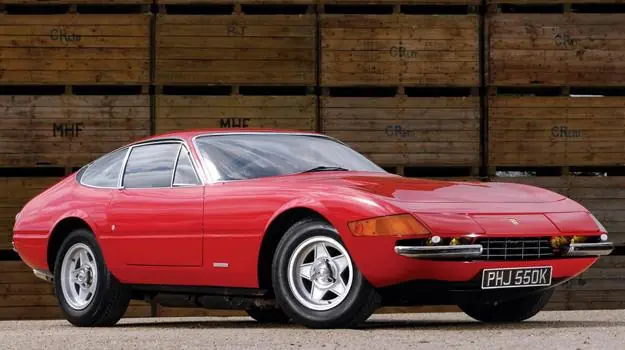Este mítico y raro Ferrari no tiene como nombre oficial Daytona, pero gracias al triunfo de Ferrari en las 24 Horas de Daytona, el público empezó a llamarlo así. El motor esta situado en la parte delantera del auto y se trata de un descomunal V12 de casi 4.4 litros que generaban 352 caballos de fuerza. La iniciales del nombre significan Gran Turismo Berlineta. El Daytona es obra de Pininfarina, se construyeron 1.406 autos de los cuales 1.284 fueron GTB, con carrocería cerrada y tan sólo 122 GTS (Gran Turismo Spider), convertibles. Su producción fue de 1968 a 1974 y es uno de los Ferraris más buscados y cotizados en el mercado de clásicos. El auto se hizo aún más famoso gracias a la serie Miami Vice en los ochenta, pero el auto que conducía el detective Sonny Crockett era una vil réplica.
