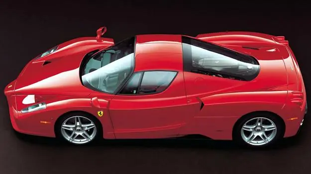 Es una de las extravagancias más grandes del fabricante italiano, el auto en honor al fundador de la marca, es virtualmente un Fórmula 1 para dos. Construido enteramente en fibra de carbono es obra del diseñador japonés Ken Okuyama de la casa Pininfarina. Tiene un motor central de 12 cilindros y seis litros de desplazamiento. La potencia del Enzo es de 660 CV y su velocidad tope ronda los 360 km/h. El siete veces campeón del mundo de F1, Michael Schumacher estuvo involucrado en el desarrollo y puesta a punto de cada uno de los 400 autos que se fabricaron en dos años.