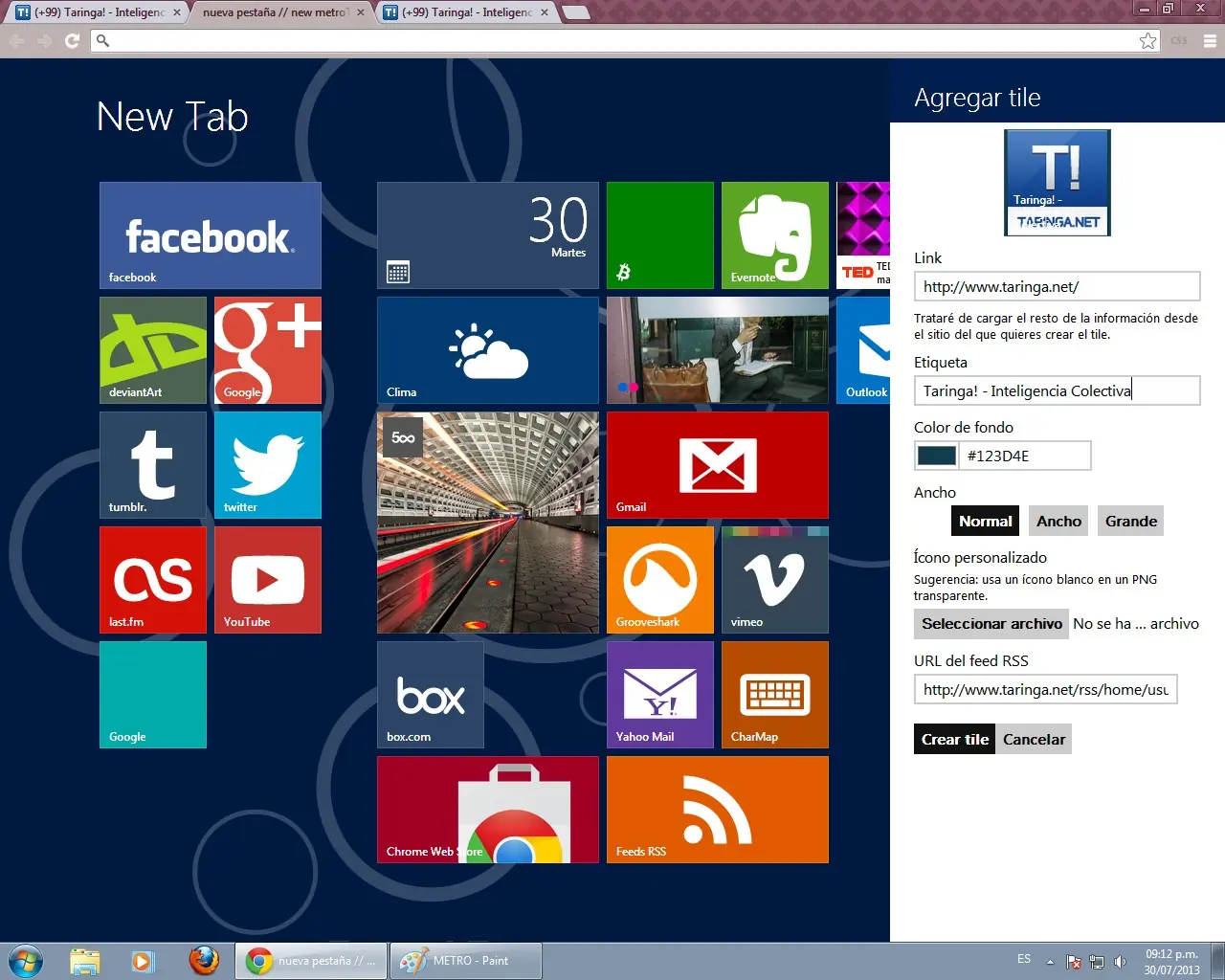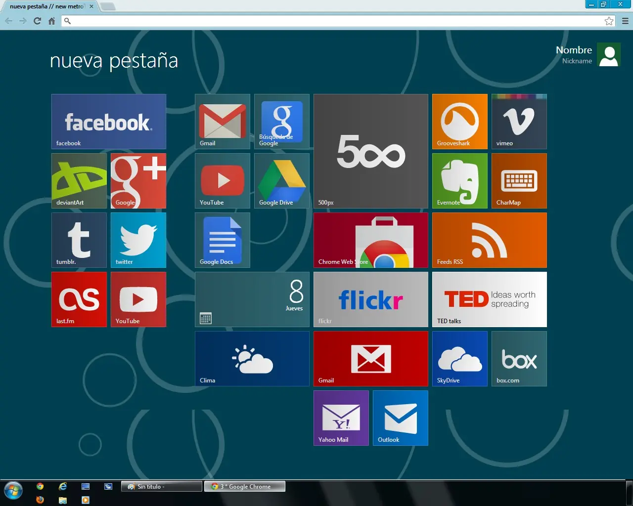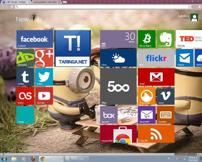 Básicamente es cambiar la apariencia de la página "Nueva pestaña" del Google chrome por una página que recuerda la pantalla de inicio del nuevo sistema de Microsoft, mucho más vistosa y colorida que la pantalla por defecto:
